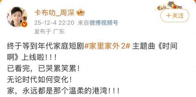 此文为【高能E蓓子】原创,禁止任何形式的转载,转载请后台联系,但欢迎你们转发到朋友圈。 今天的文章来自【超高能短剧圈】,是E姐主理的短剧自媒体,爱看短剧的闺蜜们别忘了点个关注,带大家一起穿梭于内娱和短国↓ 《家里家外2》 绝对算是12月的短剧爆款了,千万点赞+超10亿播放,甚至还请来了周深唱主题曲,方方面面都是爆剧的排面。